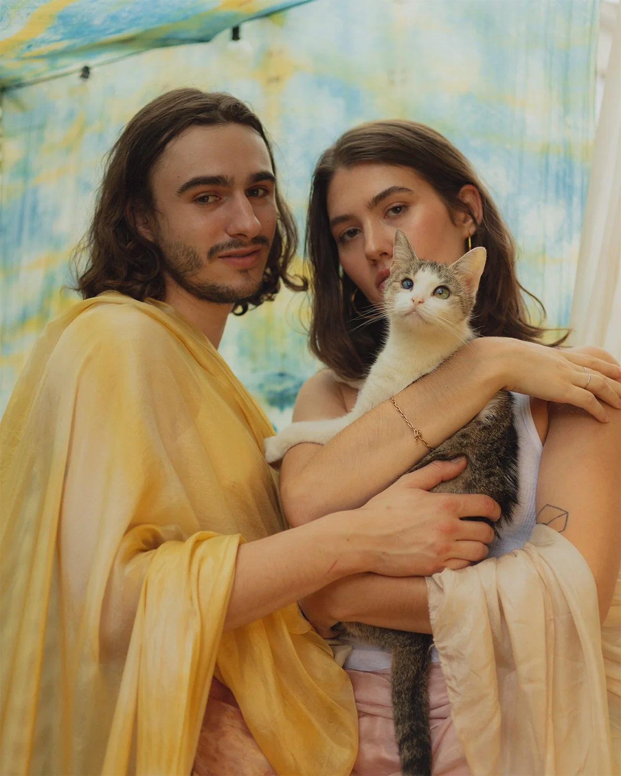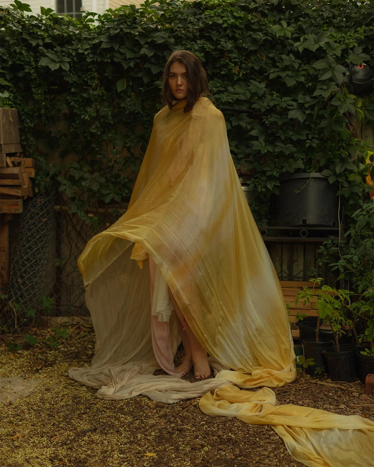 Naturally dyed silk using cochineal, tumeric, pomegranate skin, avocado pit and indigo.